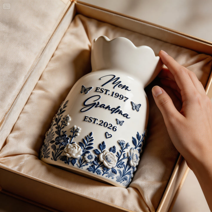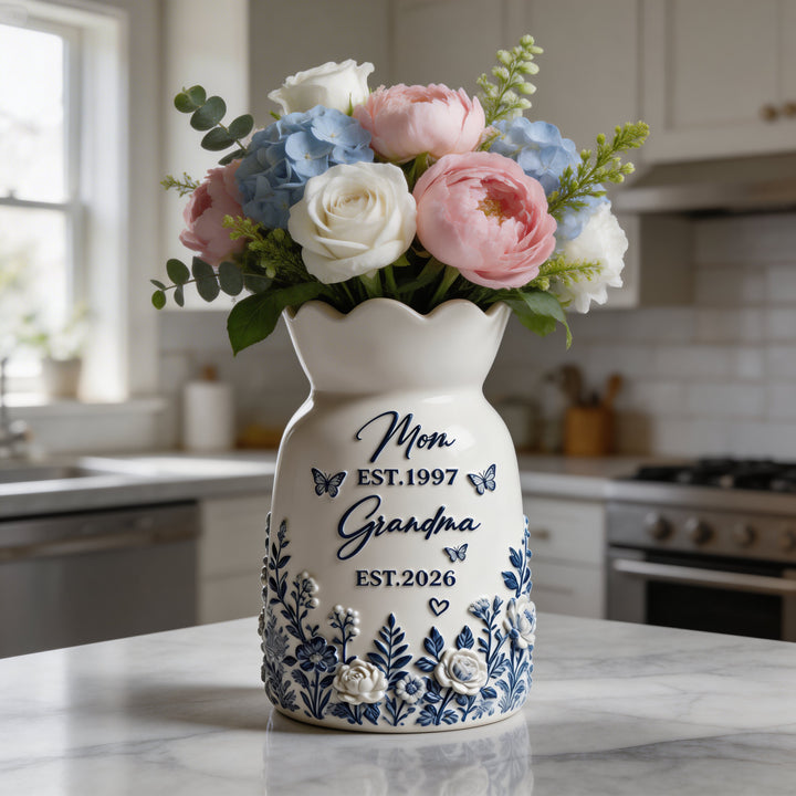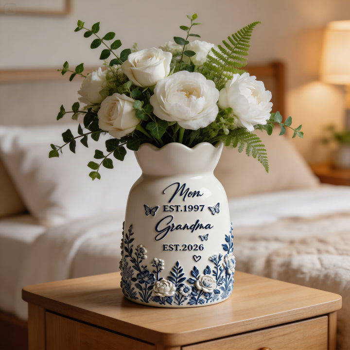 Mom to Grandma Personalized Vase, Custom Grandma Gift, Pregnancy Announcement Gift, First Time Grandma Gift, Floral Ceramic Vase Keepsake