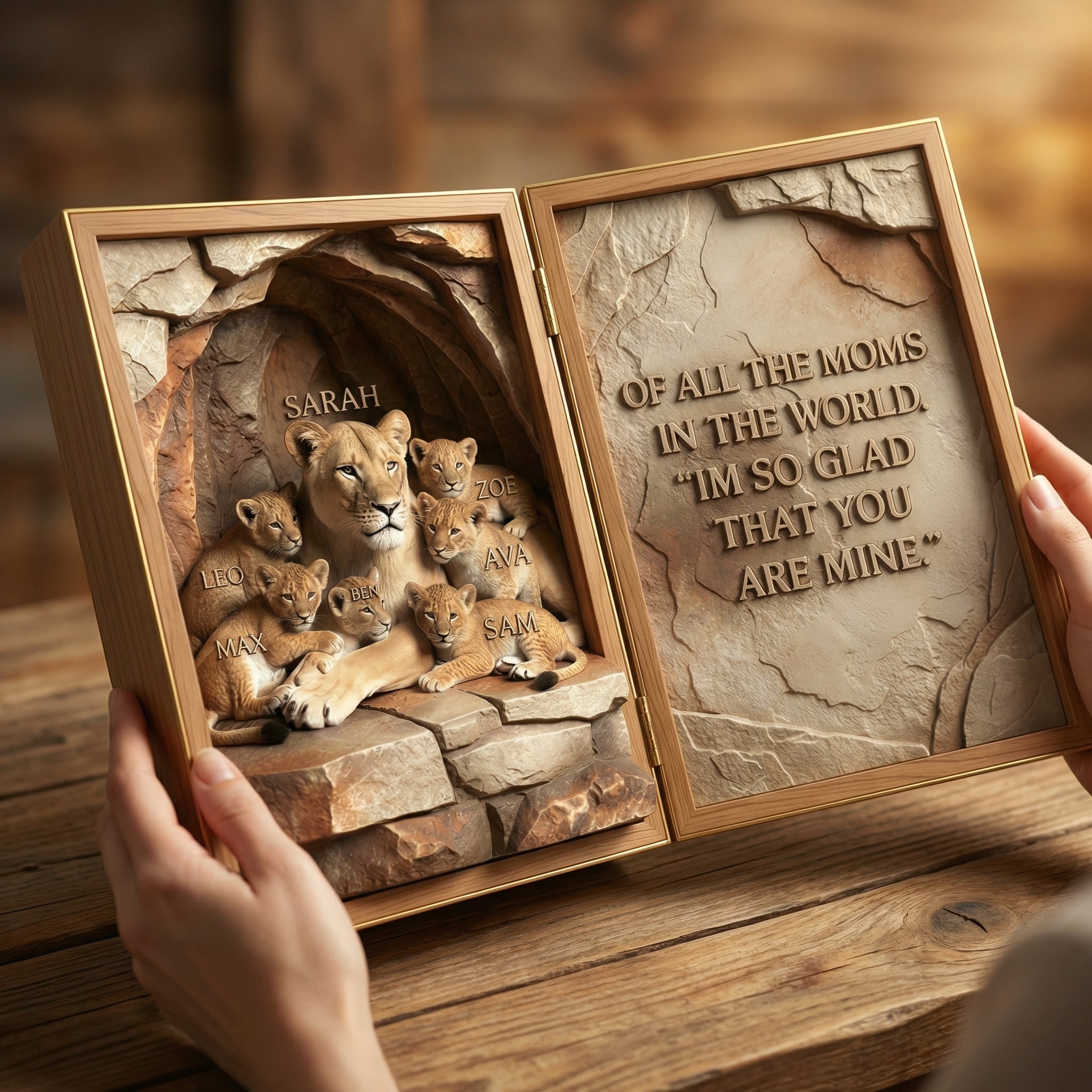 Personalized Lion Mom & Cubs Acrylic Diptych – Custom Names Family Gift For Mom