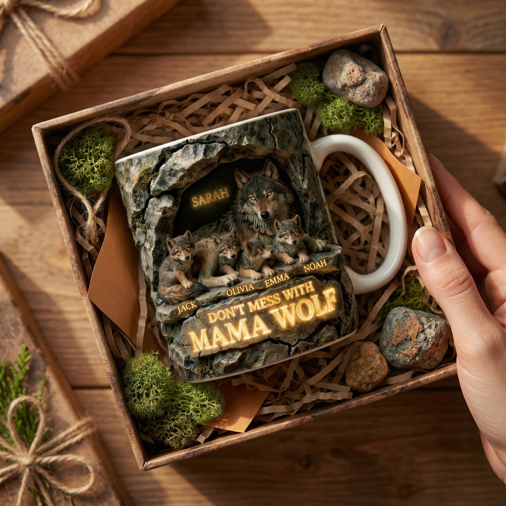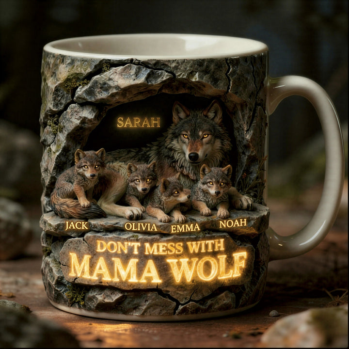 Personalized Mama Wolf Mug with Kids Names – Custom Family Coffee Cup Gift For Mom