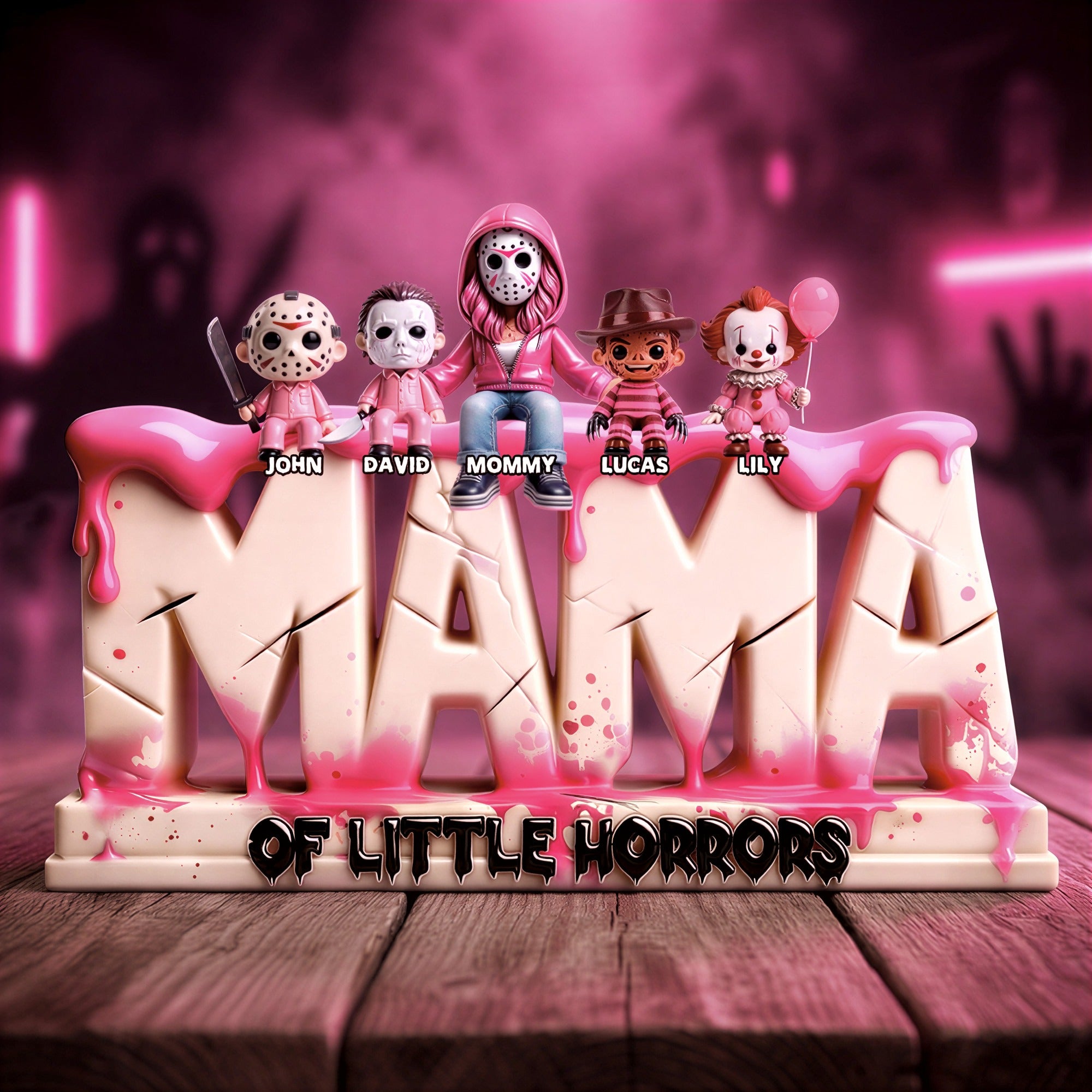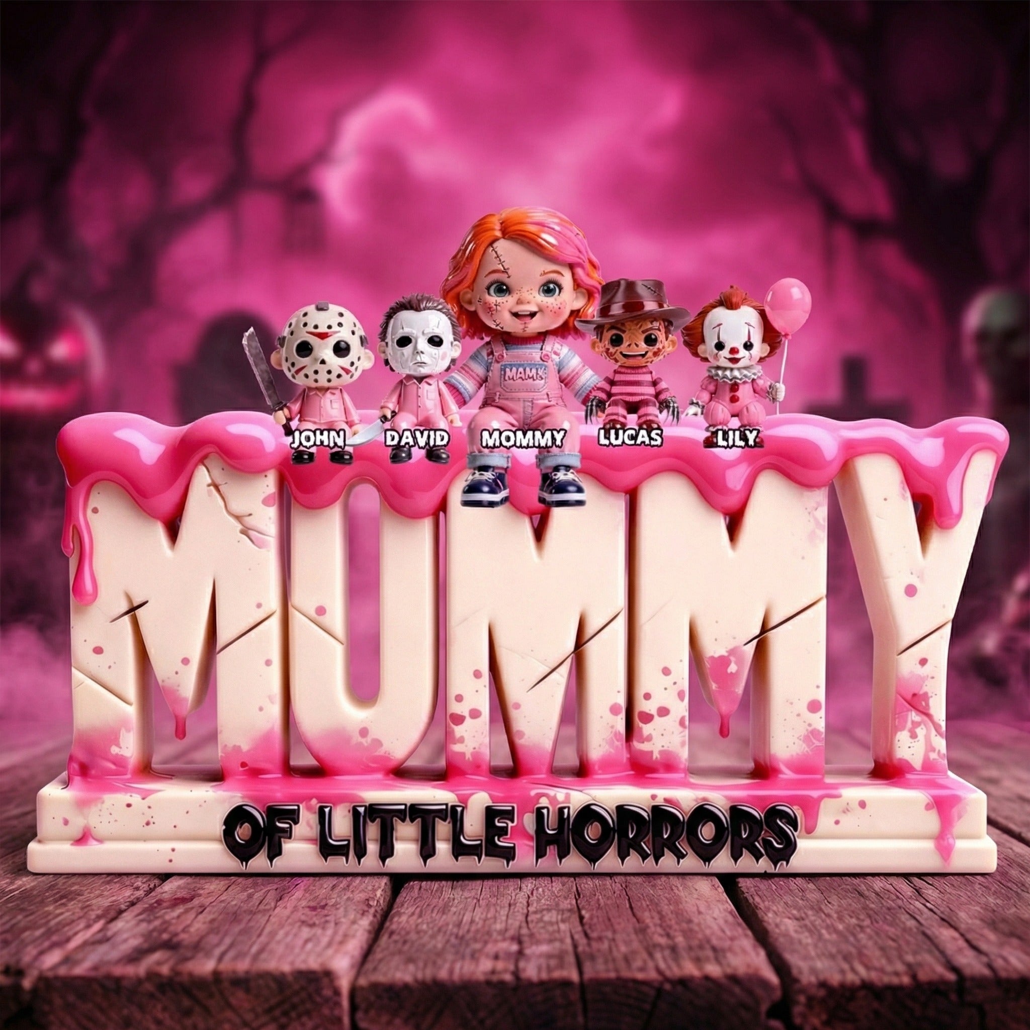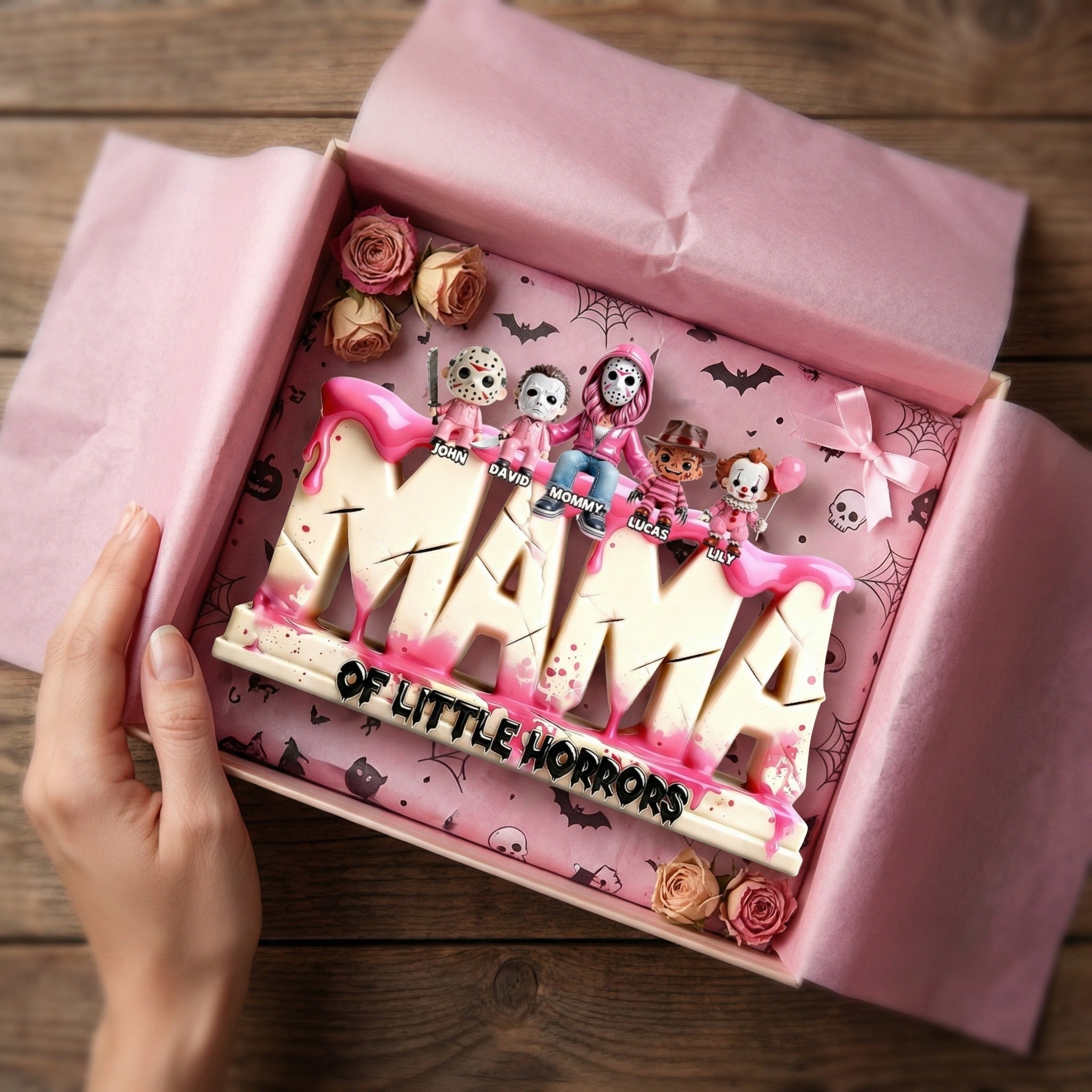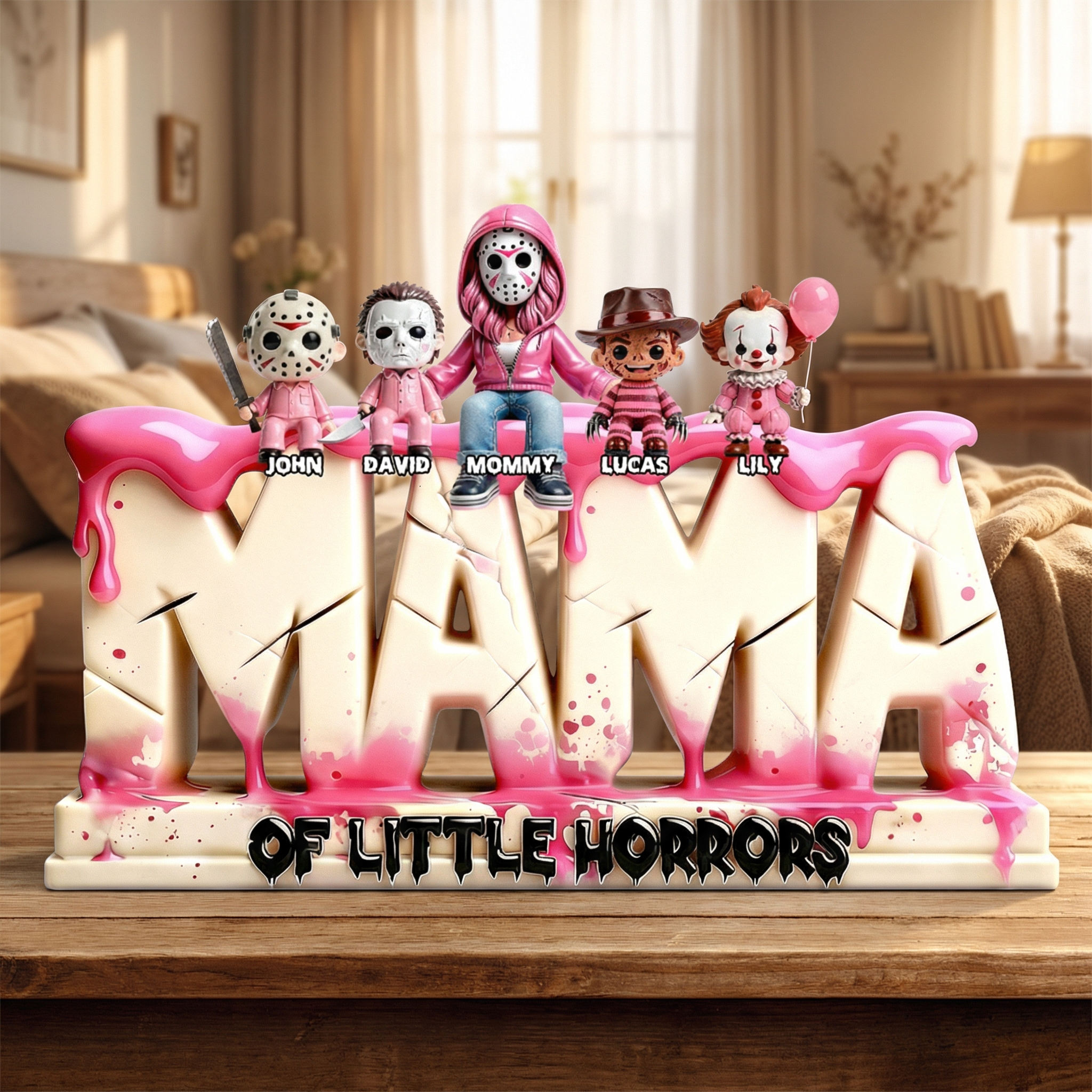 Personalized Mom Acrylic Plaque with Kids Names – Horror Family Gift For Mom