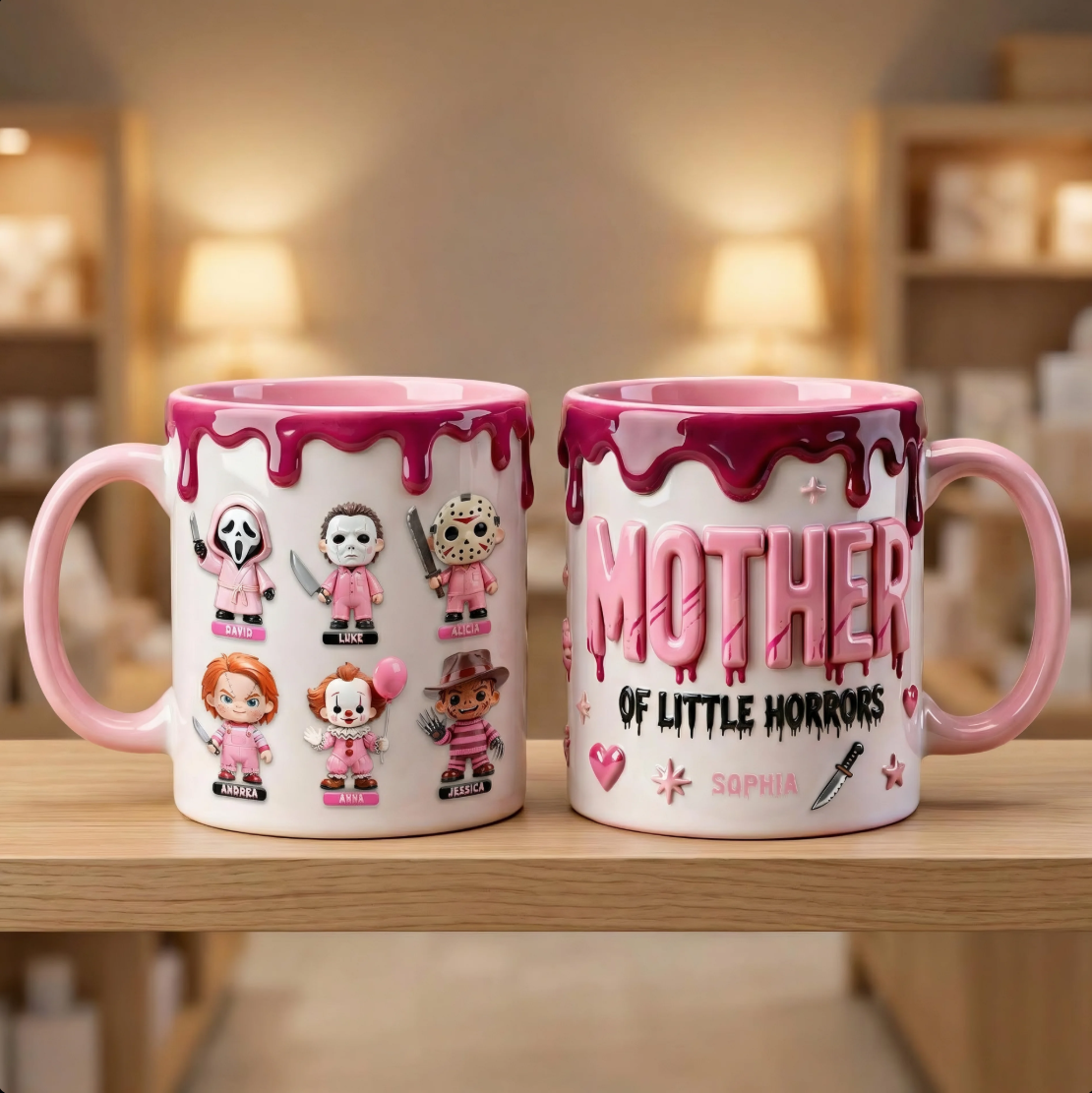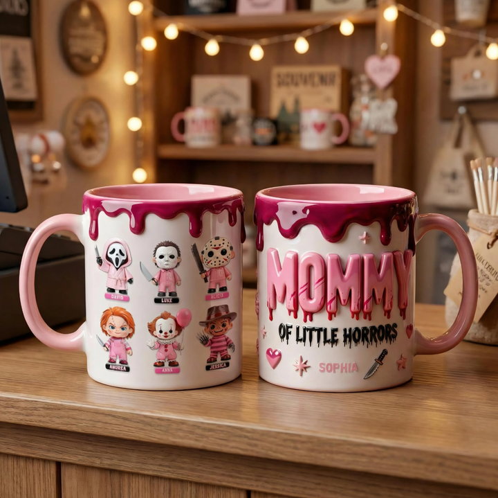 Personalized Mom Mug with Kids Characters – Cute Horror Family Coffee Cup